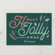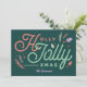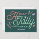 A bold, type-forward Xmas card, with of holly and pine needle embellishments.