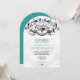 Rustic Farmhouse Vintage Teal Blue-ish Mint Green Sweet Ribbons and Cute Little Oak Leaves Vintage Banner Typography Embellishment Wedding Invitations