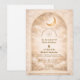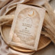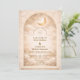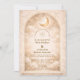 A refined celestial design featuring delicate crescent moons, scattered constellation stars, and a warm parchment-toned background. A thin gold border frames the layout, while elegant typography creates a timeless, sophisticated composition. The subtle vintage texture and balanced spacing give this piece a romantic, storybook feel without overwhelming the details. Perfect for couples who love classic elegance with a soft cosmic touch.