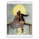 Vintage artwork by Tito Corbella features a young couple of the 1920s era on a date night. They sit closely together, side by side, on a small wooden bridge or dock, their feet dangling above the water, and they appear to be stargazing. Their heads are leaned together, looking up at the sky, and he is pointing out and explaining something. Behind them is a big yellow full moon. The artist, Tito Corbella (1885-1966), was born in Pontremoli, Italy and died in Rome, Italy. He signed his artwork as “T. Corbella” and was most famous for his Italian art deco style. His love of beautiful women, fashion and glamour is evident in the more than 300 images he painted which were often used on postcards. This card is blank inside for your own message