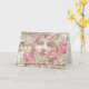 Happy Mothers Day with mother & child, and pink flowers on beautiful vintage linen background!