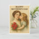 A tender, vintage-style illustration of a mother and child sharing a peaceful embrace, beautifully rendered in soft sepia tones. The mother gently holds a bouquet of vibrant red roses while the child leans in with a serene expression. The heartfelt message "Happy Mother's Day" in elegant red script completes this timeless tribute to maternal love and devotion—perfect for a classic and sentimental Mother's Day greeting.