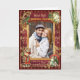 Vintage scrapbook style family photo holiday greetings. Deep red Stripes, Santa with children and golden frame for your picture and you can change the message to the front cover of this holiday card. Plenty of room on the inside to have your personal message and family name. Great design from TLS Designs.