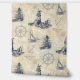 Add a coastal flair to any room of your house with this removable peel and stick wallpaper, with a maritime pattern of vintage lighthouses, sailboats and nautical icons set against a background of old paper, script letters, and postal cancels.