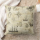 A beautifully detailed vintage nautical pattern throw pillow featuring hand-drawn ships, compasses, navigation tools, and maritime sketches. The aged parchment background and intricate line art create a classic nautical aesthetic.