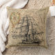 Throw pillow with image of vintage nautical map on the front and image of rope on the back.