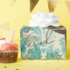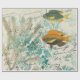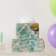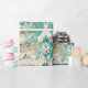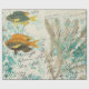 Gift wrap featuring iridescent fish against a distressed grunge damask background with vintage calligraphy in accents of teal and gold.