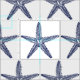 Vintage Navy Blue Starfish Monogram Coastal Linen Fabric