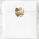 A little girl writes a letter using a dip pen. An arrangement of holly stands on the table nearby. The text says HAPPY NEW YEAR!