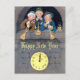 This is a digitally enhanced image from a vintage New Year card featuring a clock and three children in a tower with trumpets. You can easily personalise the text with this template.