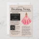 Beautiful, vintage style newspaper, "Breaking News", special edition with customisable templates with a girl in formal gown. Her beautiful, watercolor dress is a salmon pink colour with faux glitter accents.