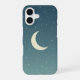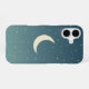 Retro illustration of a night sky featuring a crescent moon and scattered stars in soft bluish tones.
