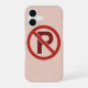 A clean retro no-parking sign designed with muted red tones and simple lines.