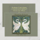 This lovely invitation features a reproduction of a section of wallpaper by Walter Crane of the English Arts and Craft fine art movement (c 1900). The design depicts 2 white Swans amid pale green rushes on a muted blue background. The image is repeated opaquely on the reverse, with a calligraphy template for all the event details - front and back. Available separately on a muted green background.