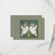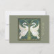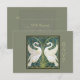 This lovely RSVP features a reproduction of a section of wallpaper by Walter Crane of the English Arts and Craft fine art movement (c 1900). The design depicts 2 white Swans amid pale green rushes on a muted blue background. The image is repeated opaquely on the reverse, with a calligraphy template for all the event details. Also available with a dark moss background and a pale green.
