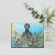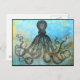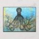 Vintage octopus illustration overlay on aqua and gold abstract background