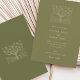 This vintage-inspired wedding invitation features a graceful Tree of Life design in soft cream set against an elegant olive green backdrop. Symbolising growth and unity, the intricate tree graphic sits at the top of the card, creating a timeless aesthetic. The minimalist typography in cream complements the vintage colour palette, giving the card a sophisticated yet natural feel. The reverse side continues the theme with a matching design, making it perfect for couples seeking a nature-inspired, rustic, and elegant wedding theme.