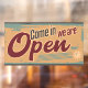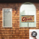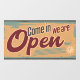 A vintage, retro sign that says come on in we're open. Open for business. For a cafe, garage or restaurant.