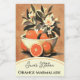 This vintage-style jam label features an illustration of a bowl of oranges and white orange blossoms on a rustic brown background. The design adds vintage farmhouse charm to homemade jam jars and preserves. It’s perfect for home canners and gifting. Personalise the kitchen name and preserve type to make each label your own.