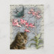This vintage collage layers a pensive kitty cat with vintage pink orchids and a vintage bluebird with a letter to deliver over a handwritten letter.