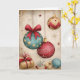 Share timeless holiday elegance with this beautiful Christmas card featuring vintage-inspired ornaments in rich teal, red, and gold hanging gracefully against a warm cream background adorned with delicate snowflakes and starburst accents. The stunning teal ornament with golden stars and luxurious red bow, paired with wrapped presents below, creates a sophisticated, classic aesthetic perfect for those who appreciate refined holiday style. Ideal for sending elegant wishes to family, friends, or colleagues. Fully customizable inside message.
