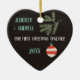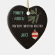Commemorate your first Christmas together or create a sweet gift for your sweetheart. The bold black heart-shaped ornament has a vintage Christmas ornament illustration in red, cream and aqua blue with coordinating aqua and cream lettering spelling out your choice of message. The back of this ornament has a pattern of vintage ornaments against a black background.