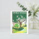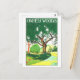 This postcard is a reproduction of a vintage London Underground travel poster for Oxhey Woods in England.