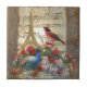 Chic elegant sophisticated vintage digital collage of the Eiffel tower, Paris, France, with peacock and cute bird with crown, and a pretty feminine girly floral rose bouquet on a distressed brown antique music sheet background.