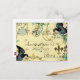 Vintage style postcard with ephemera postcard background embellished with bluebirds and postage stamps.