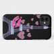 vintage Paris with love Eiffel tower iphone 5 cover case. This beautifu retrol iphone five cover case with the iconic French designs of the Eiffel tower in steely blue, floating pink love hearts, a chandelier and an ooh la la lipstick kiss on a black background are all adding up to a francophiles favourite french vintage or retro fashion design for this Apple iphone 5 case cover. Change colour of background to any colour you prefer. Simply click CUSTOMIZE IT>EDIT>BACKGROUND and choose your colour from the menu.