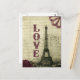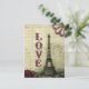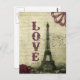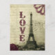 Vintage Eiffel Tower image in Paris, France. An old French love letter is faded in the background.