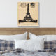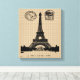 Vintage Paris postcard with the Eiffel Tower on burlap style background.