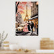 Poster is shown with a vintage art print of the beautiful streets of Paris.