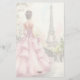 Lady standing near a window looking at the Eiffel Tower. Customizable name.
