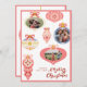 This vintage Christmas ornament photo card is a reminder of days gone by, with a modern twist. Three ornament have place holders for 3 of your favourite photos. At the bottom it says wishing you a very merry Christmas. On the back is a large ornament that says "SENDING WARM HOLIDAY WISHES TO YOU & YOURS THIS CHRISTMAS SEASON." There is a place to personalise with your family names. Colours include, pink, salmon pink, blue, navy, golden yellow and red.