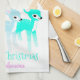 Add a festive touch to your kitchen or create a personalised hostess gift that's perfect for holiday parties. This adorable kitchen towel features three kitschy, retro deer in pink, light blue and bright mint green with matching vintage Christmas stars accents. It's ready to be personalised with your own message and name.