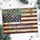 Send Merry Christmas greetings to friends and family with this unique USA American Flag Christmas Card - USA American flag design vintage red white blue design with holly and berries. Personalise with message and family name. This patriotic Christmas card is perfect for military families, veterans, patriotic family and veteran service department christmas cards. COPYRIGHT © 2020 Judy Burrows, Black Dog Art - All Rights Reserved. Vintage Patriotic American Flag Merry Christmas Note Card