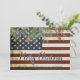 Send Merry Christmas greetings to friends and family with this unique USA American Flag Christmas Card - USA American flag design vintage red white blue design with holly and berries. Personalise with message and family name. This patriotic Christmas card is perfect for military families, veterans, patriotic family and veteran service department christmas cards. COPYRIGHT © 2020 Judy Burrows, Black Dog Art - All Rights Reserved. Vintage Patriotic American Flag Merry Christmas Holiday Card
