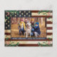 Send Merry Christmas greetings to friends and family with this unique USA American Flag Christmas Card - USA American flag design vintage red white blue design with holly and berries. Personalise with your favourite photo, message and family name. This patriotic Christmas card is perfect for military families, veterans, patriotic family and veteran service department christmas cards. COPYRIGHT © 2020 Judy Burrows, Black Dog Art - All Rights Reserved. Vintage Patriotic American Flag Photo Christmas Holiday Postcard