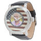 Honour your loved one with a patriotic custom photo memorial watch. This unique military memorial watch is the perfect gift for yourself, family or friends to pay tribute to a military veteran, military soldier, army, marines or fallen soldier. This patriotic memorial watch features a vintage red white and blue USA American Flag, stars and strips.
