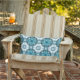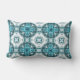 Vintage pattern, abstract flowers, teal, white lumbar cushion