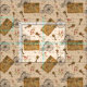 pattern with Keys, writings, old bicycles, postal letters and flowers