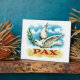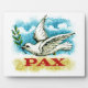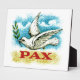 A vintage print dating from 1914 which reads simply ' Pax ', the Latin word for peace and depicts a dove with a sprig of green in her beak.