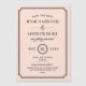 Affordable custom magnetic wedding save the date cards with a simple template for customisation. Use the design tools to personalise the text with your wedding details. Edit the text fonts and colours, change the background colour or upload your own photos to create a one of a kind save the date magnet. This vintage art deco inspired design has an elegant border and mix of script and sans serif typography in black and blush pink colours.