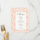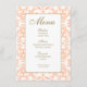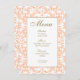This vintage peach and white patterned design with gold writing is elegant, feminine and traditional. Suited to spring, summer and fall weddings.