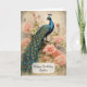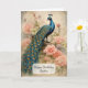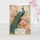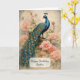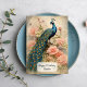 An elegant vintage-style illustration featuring a majestic peacock surrounded by soft pastel flowers and delicate botanical details. The muted antique background and rich feather colours create a timeless decorative composition inspired by classic botanical art.
