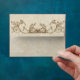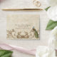 This elegant and sophisticated invitation envelope blends the best of tradition and the freshness of the contemporary. Mixing Vintage art elements and contemporary watercolor art work hand painted by Audrey Jeanne Roberts gives a beautiful and timeless quality to this invitation. A stately Peacock rest upon elegant etched swirls and looking towards a very subtle hand painted damask with peacock blue behind it. Also available in a custom colour version where you can put any colour where the blue is now. Every product shown can be created in any colour you wish. YOU MIGHT ALSO ENJOY: WEDDING INVITATIONS: