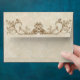 This elegant and sophisticated invitation envelope blends the best of tradition and the freshness of the contemporary. Mixing Vintage art elements and contemporary watercolor art work hand painted by Audrey Jeanne Roberts gives a beautiful and timeless quality to this invitation. A stately Peacock rest upon elegant etched swirls and looking towards a very subtle hand painted damask with peacock blue behind it. Also available in a custom colour version where you can put any colour where the blue is now. Every product shown can be created in any colour you wish. YOU MIGHT ALSO ENJOY: WEDDING INVITATIONS:
