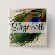 Vintage Peacock Feather 15 Cm Square Badge