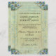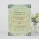 A vintage wedding invitation with peacock feathers and a delicate calligraphy border. This invitation is part of a complete set.